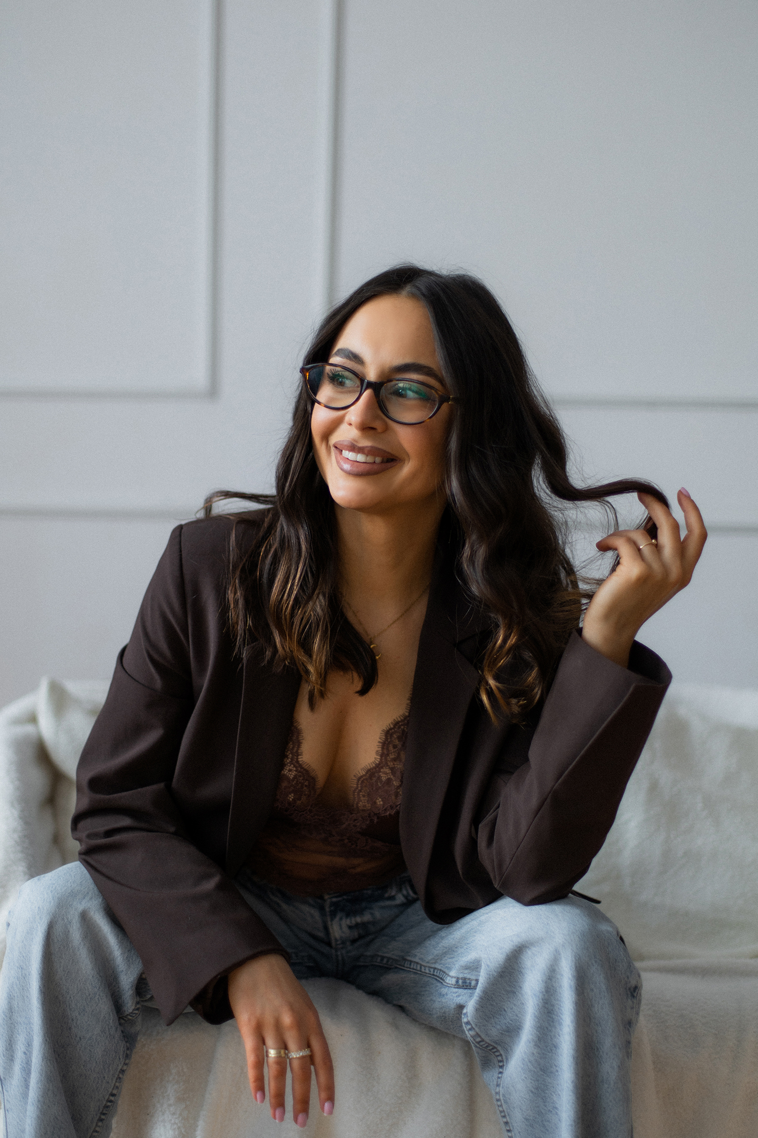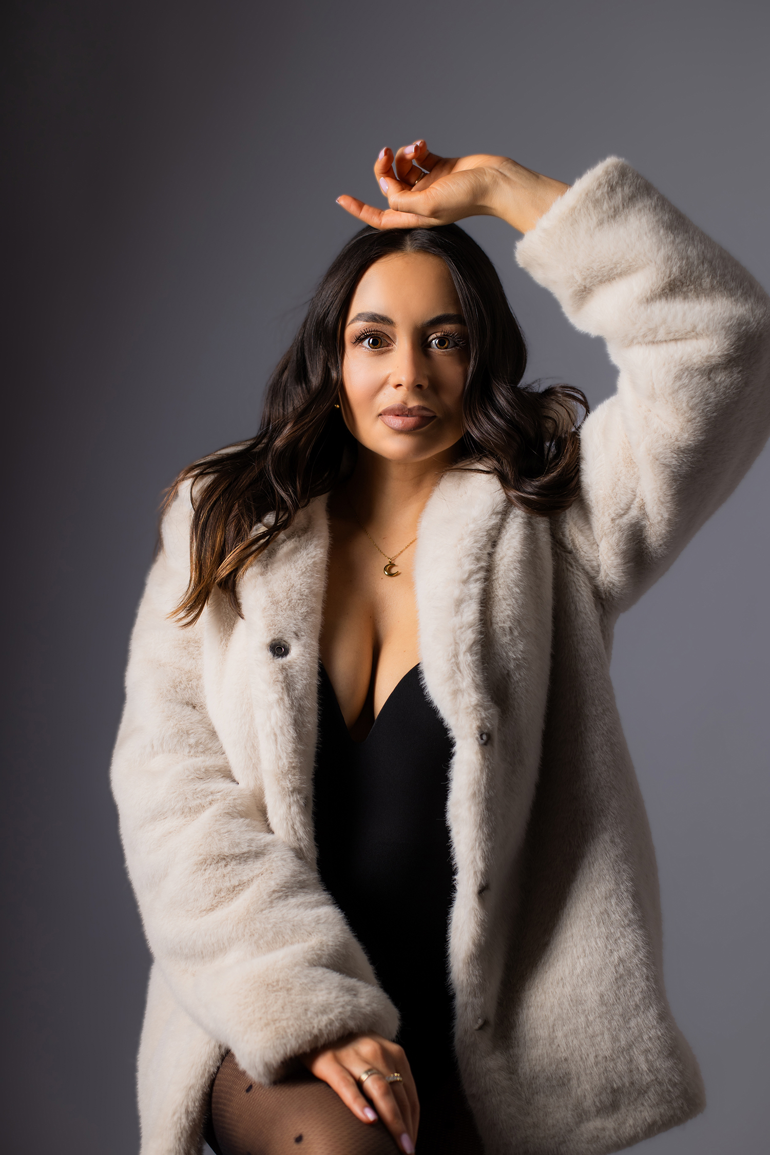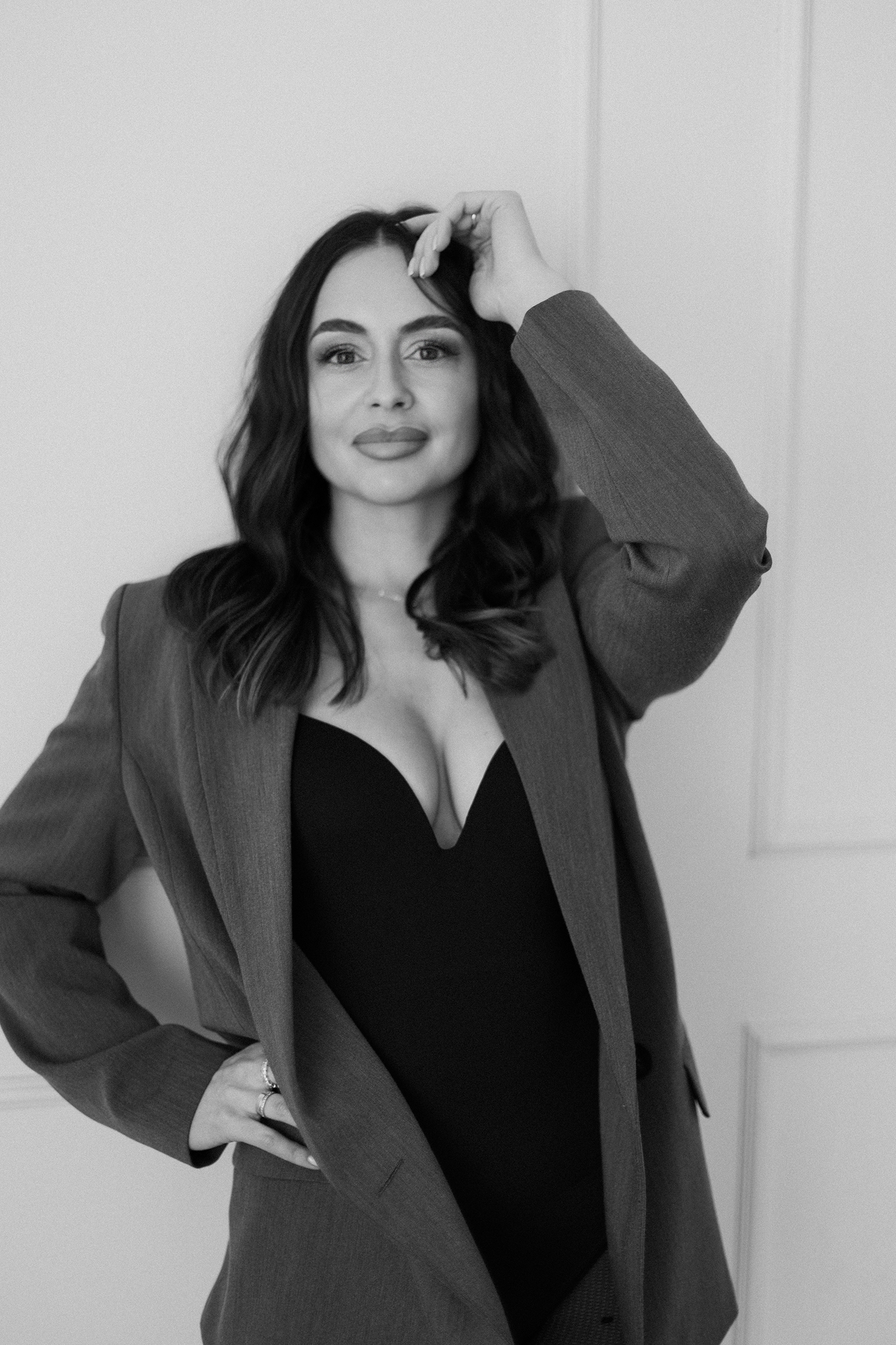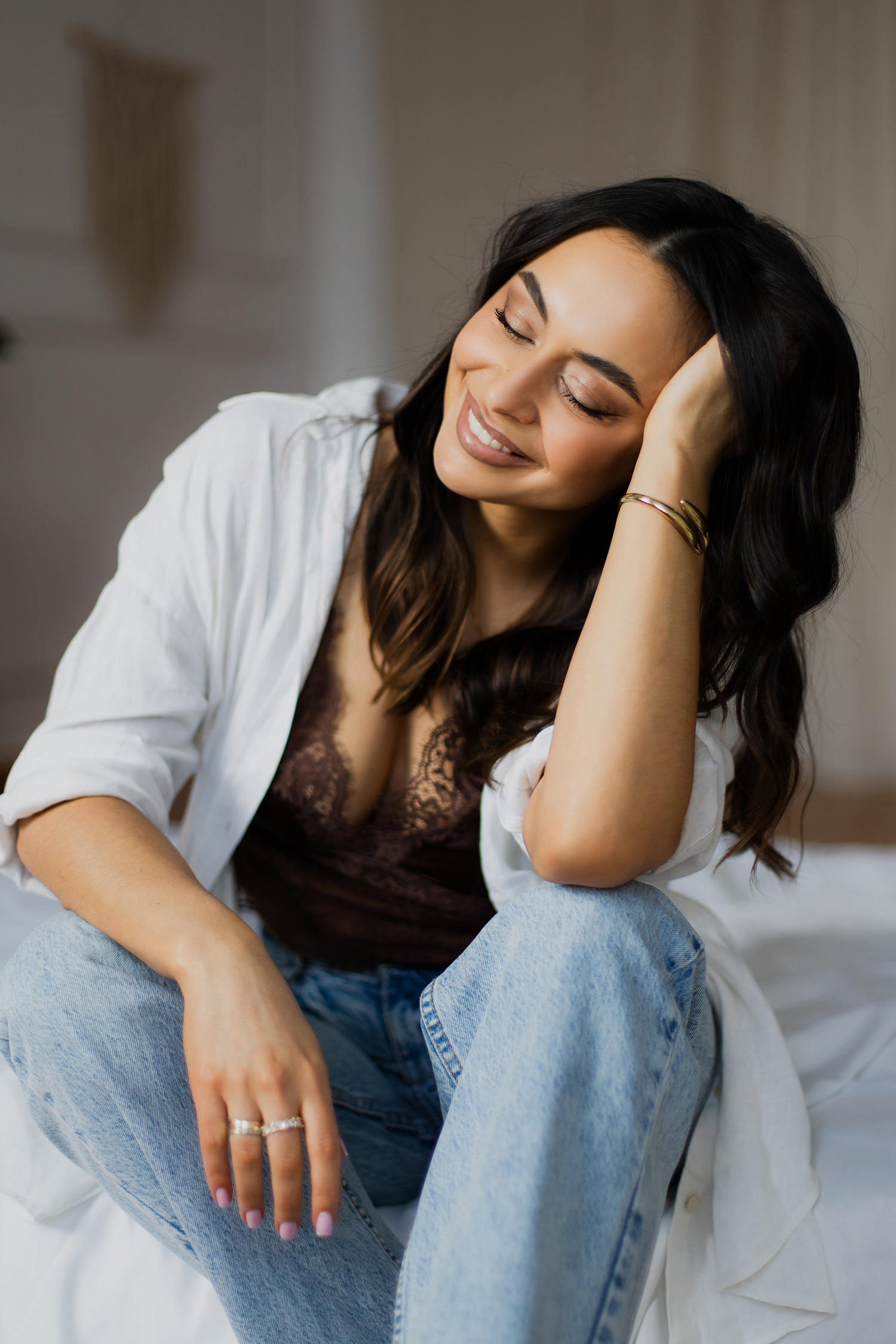 Podczas sesji postawiliśmy na delikatne, naturalne światło oraz minimalistyczne tło, które idealnie wydobywa charakter modelki. Profesjonalny makijaż i stylizacja dopełniły całość, tworząc spójną, elegancką opowieść w kadrach.