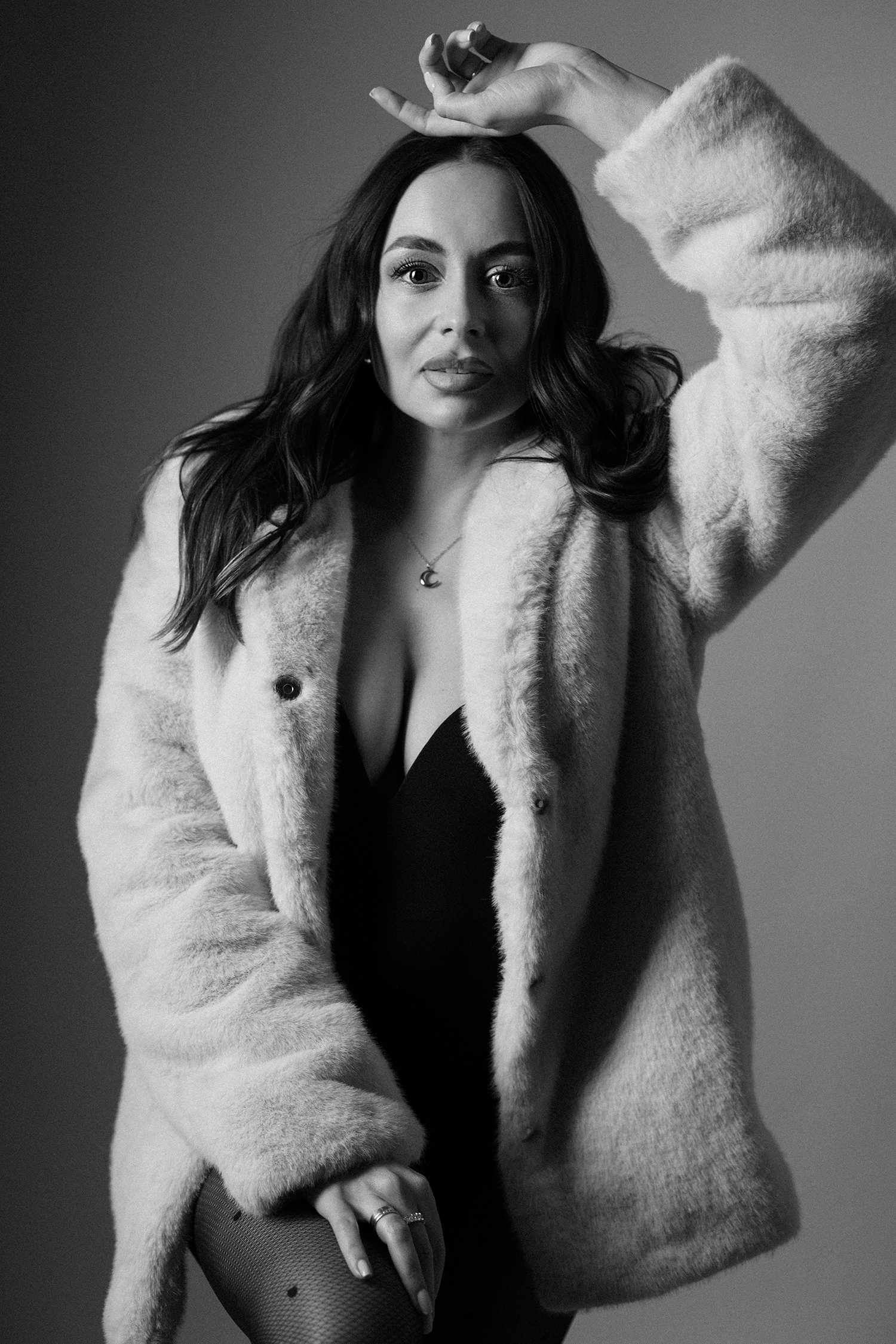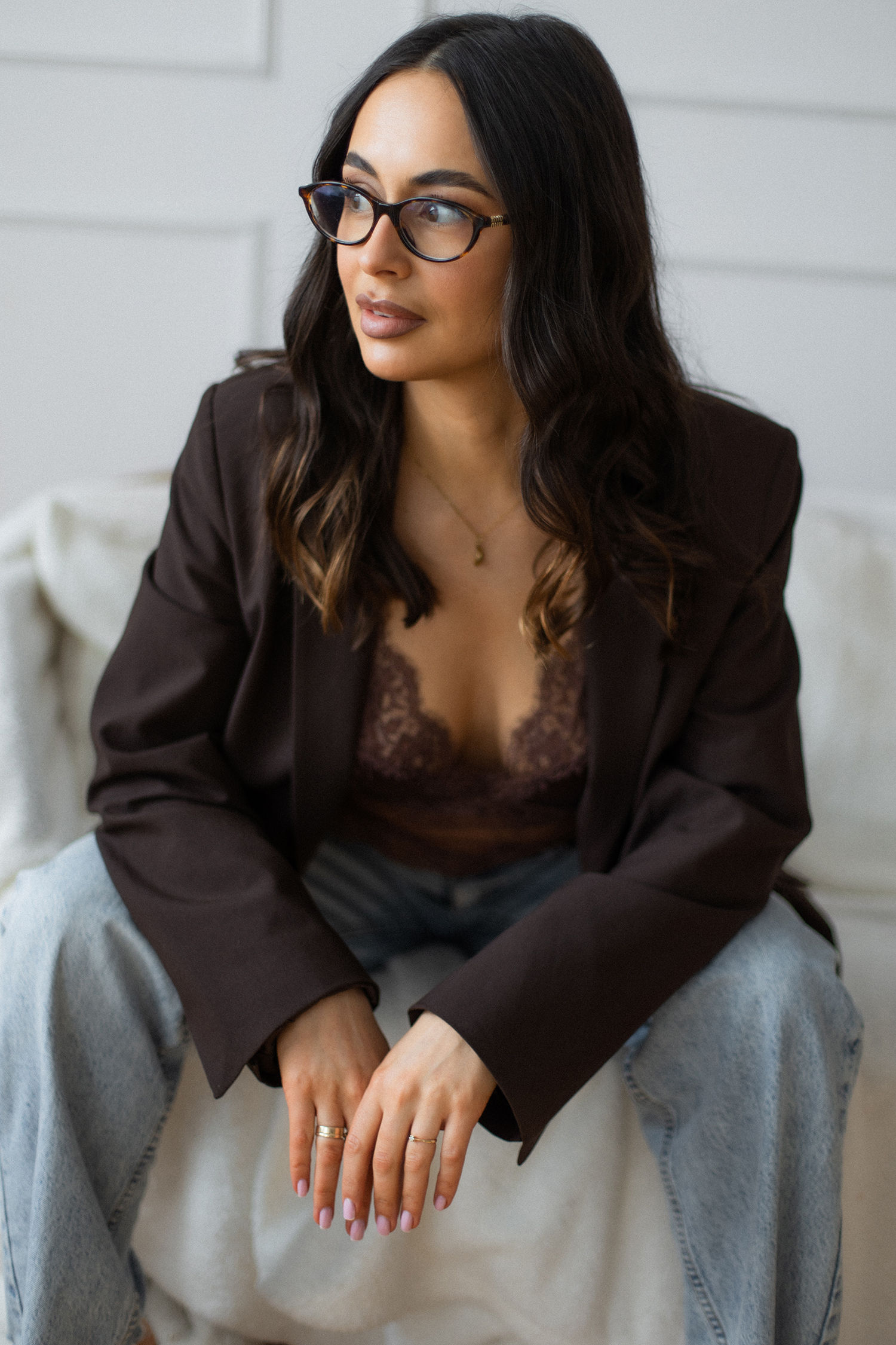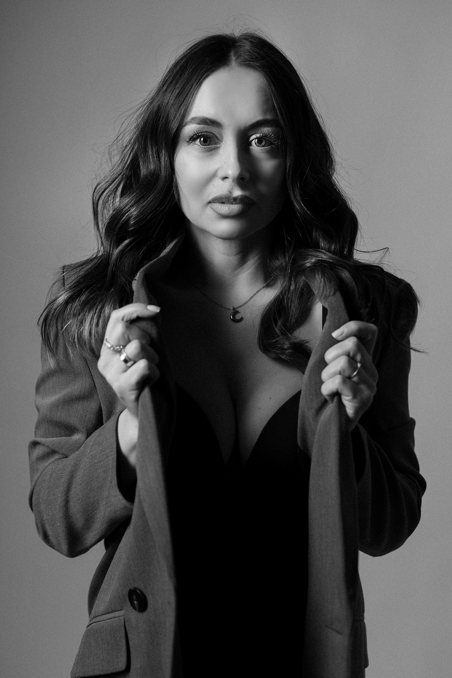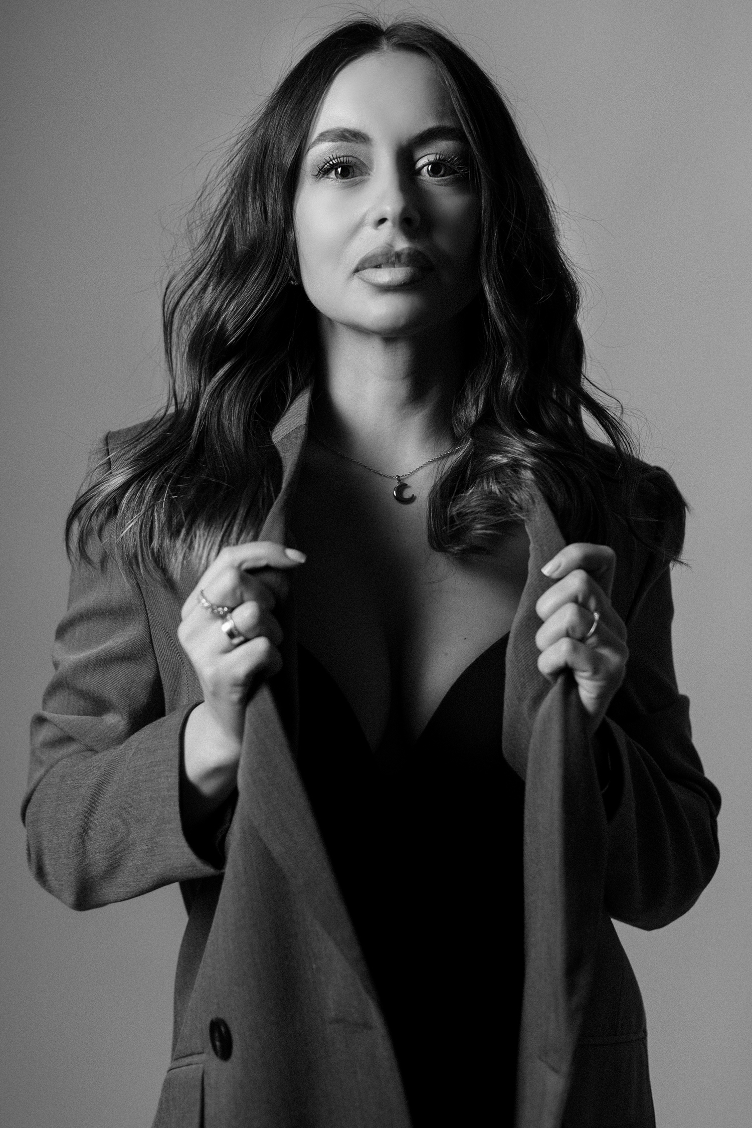 Podczas sesji postawiliśmy na delikatne, naturalne światło oraz minimalistyczne tło, które idealnie wydobywa charakter modelki. Profesjonalny makijaż i stylizacja dopełniły całość, tworząc spójną, elegancką opowieść w kadrach.