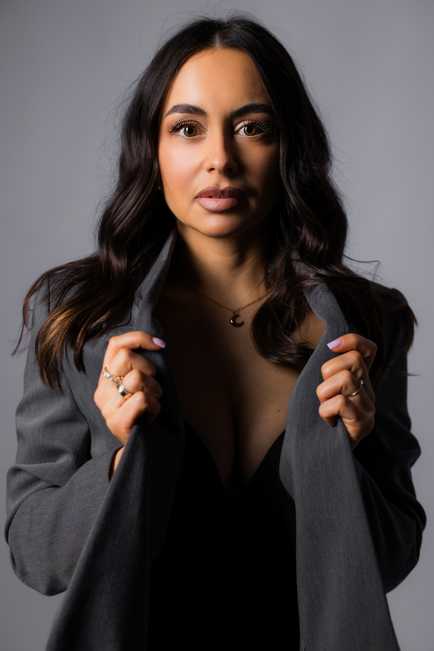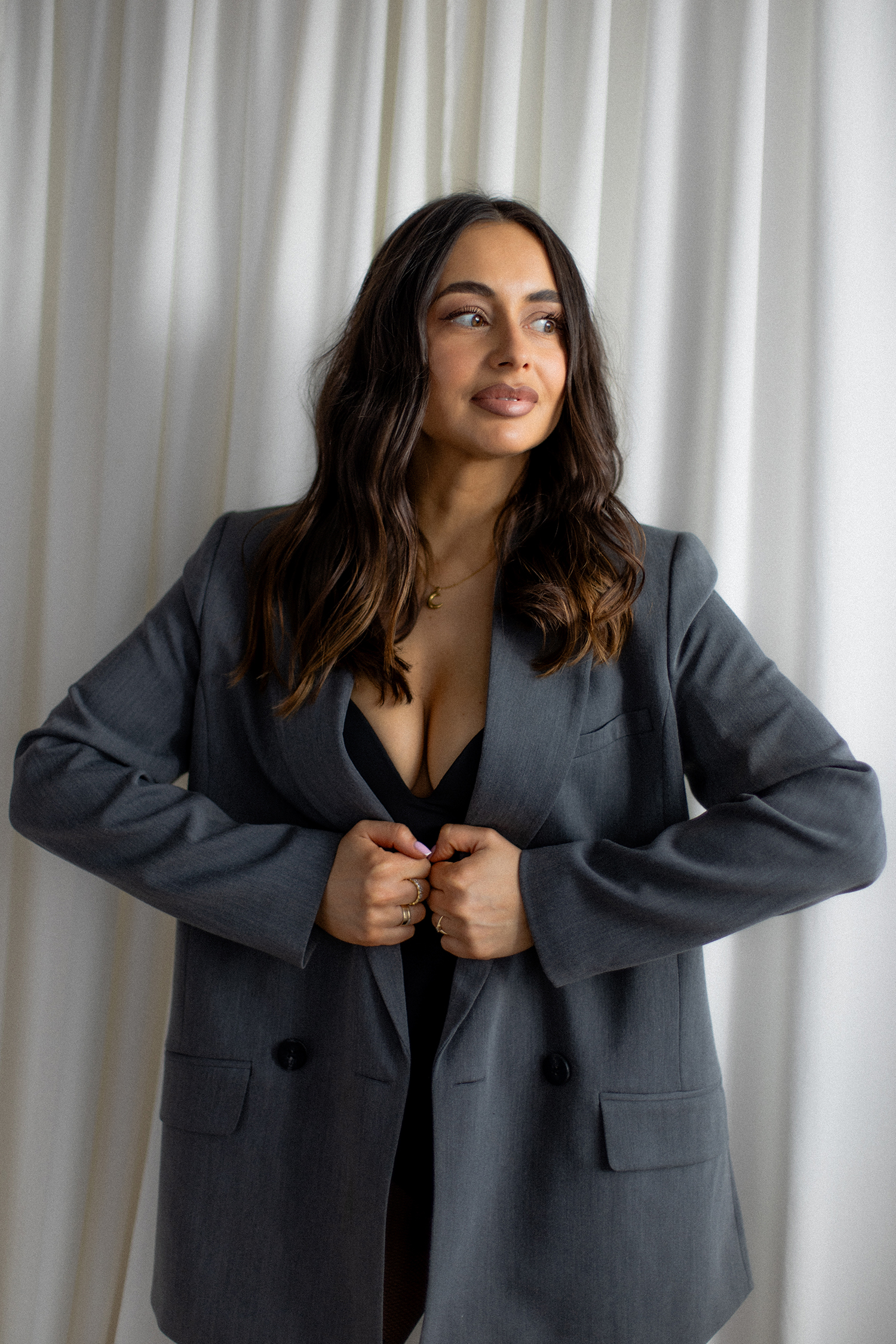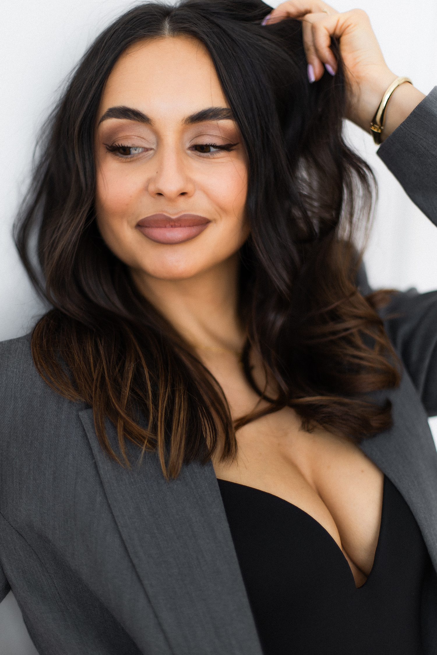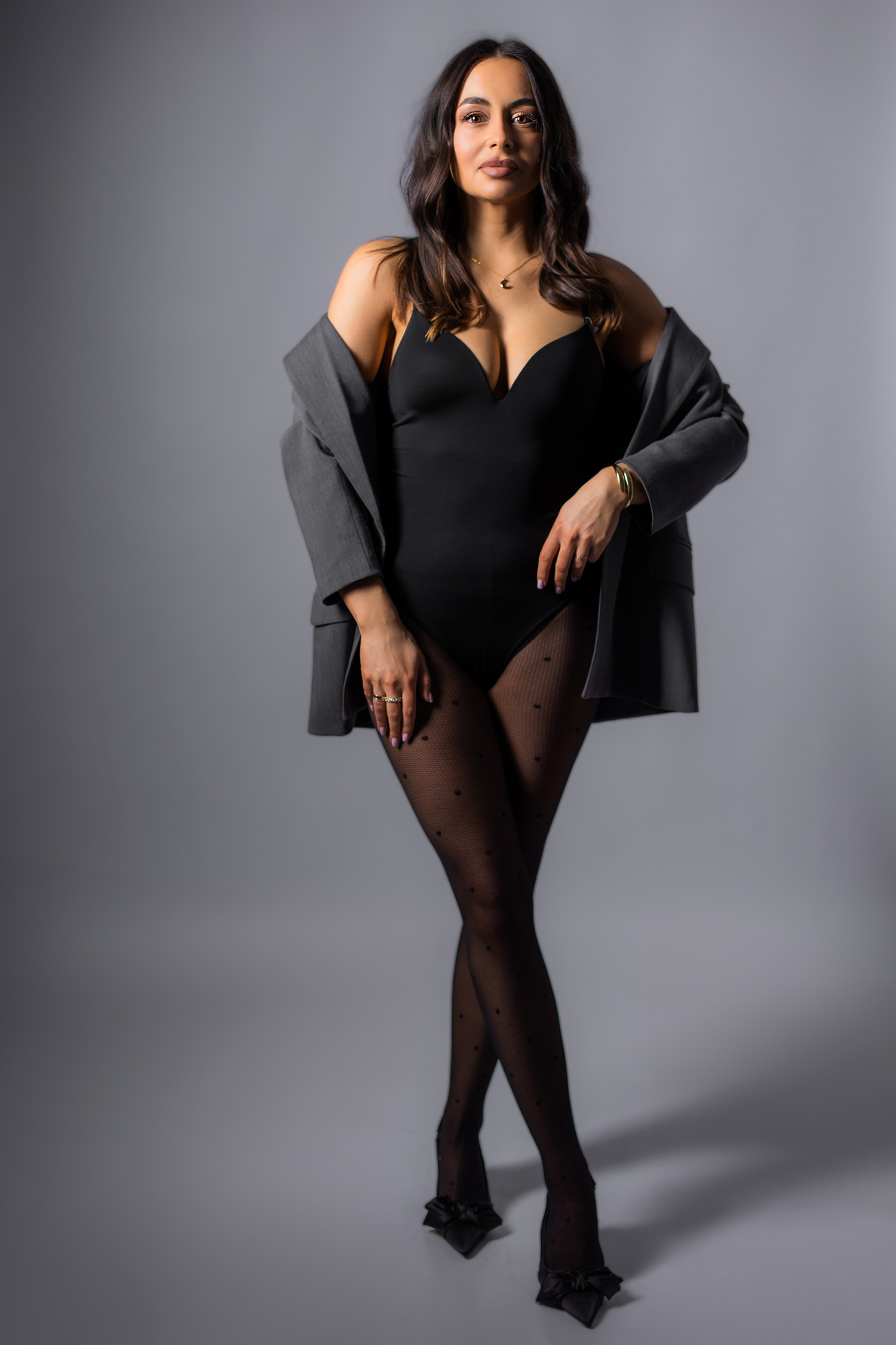 Podczas sesji postawiliśmy na delikatne, naturalne światło oraz minimalistyczne tło, które idealnie wydobywa charakter modelki. Profesjonalny makijaż i stylizacja dopełniły całość, tworząc spójną, elegancką opowieść w kadrach.