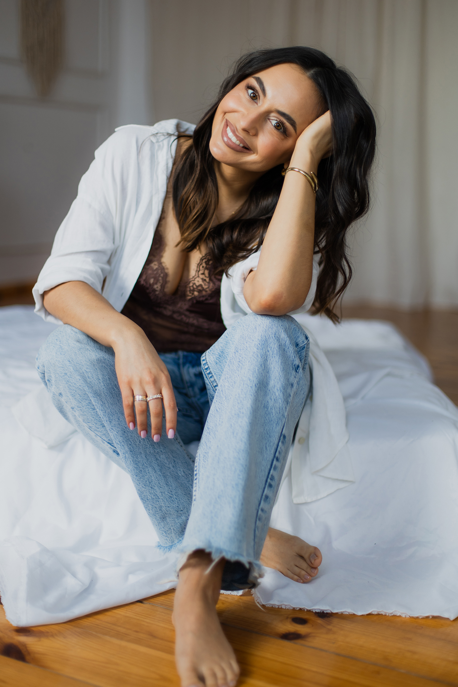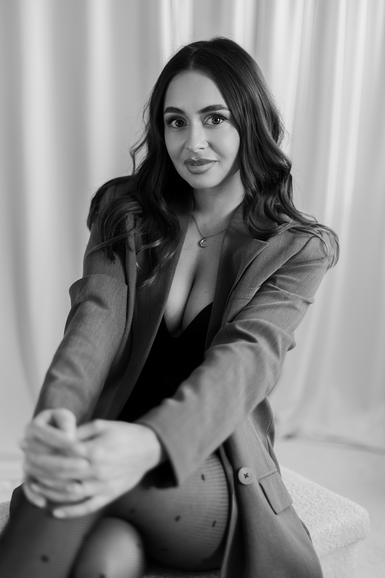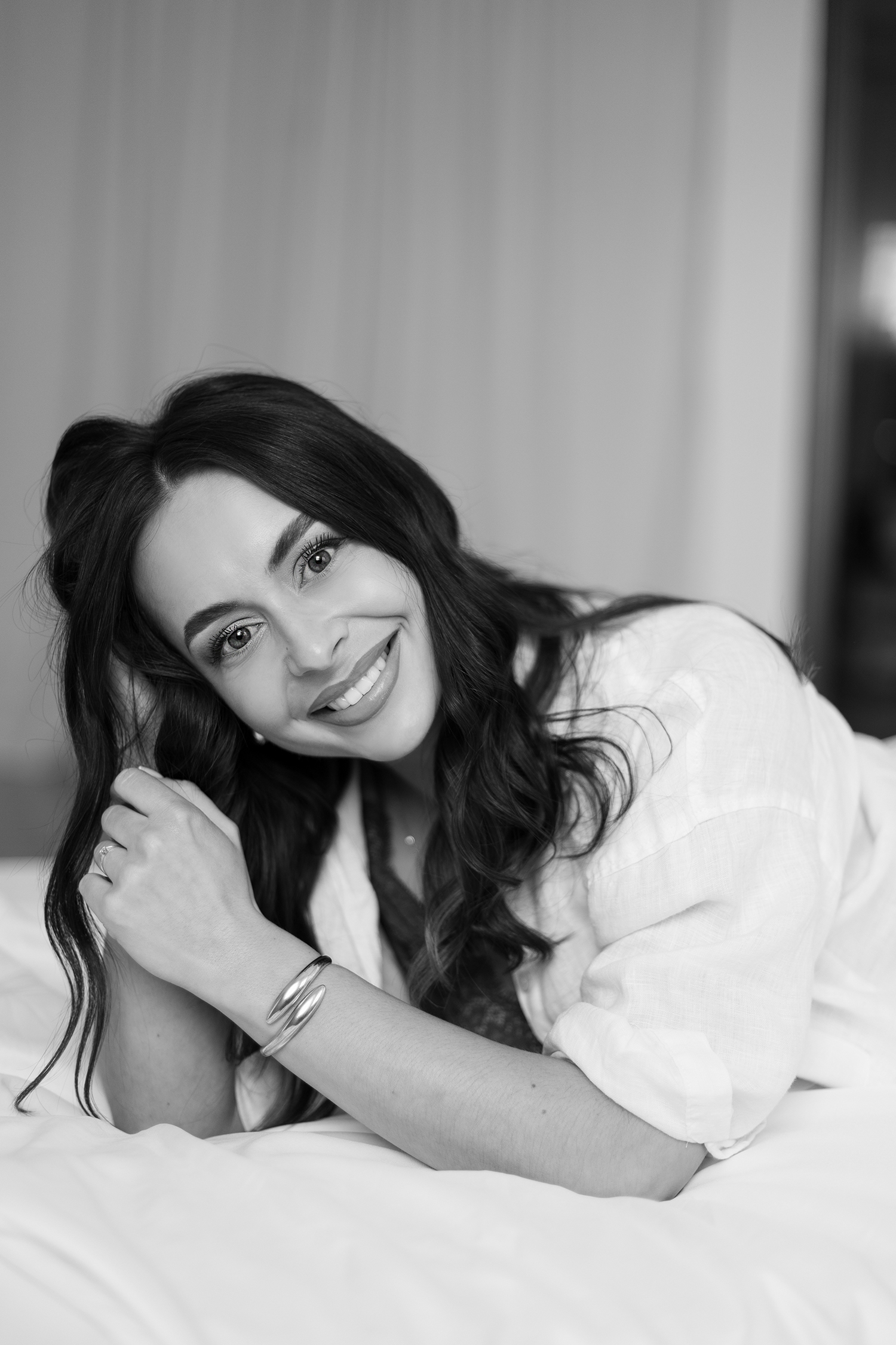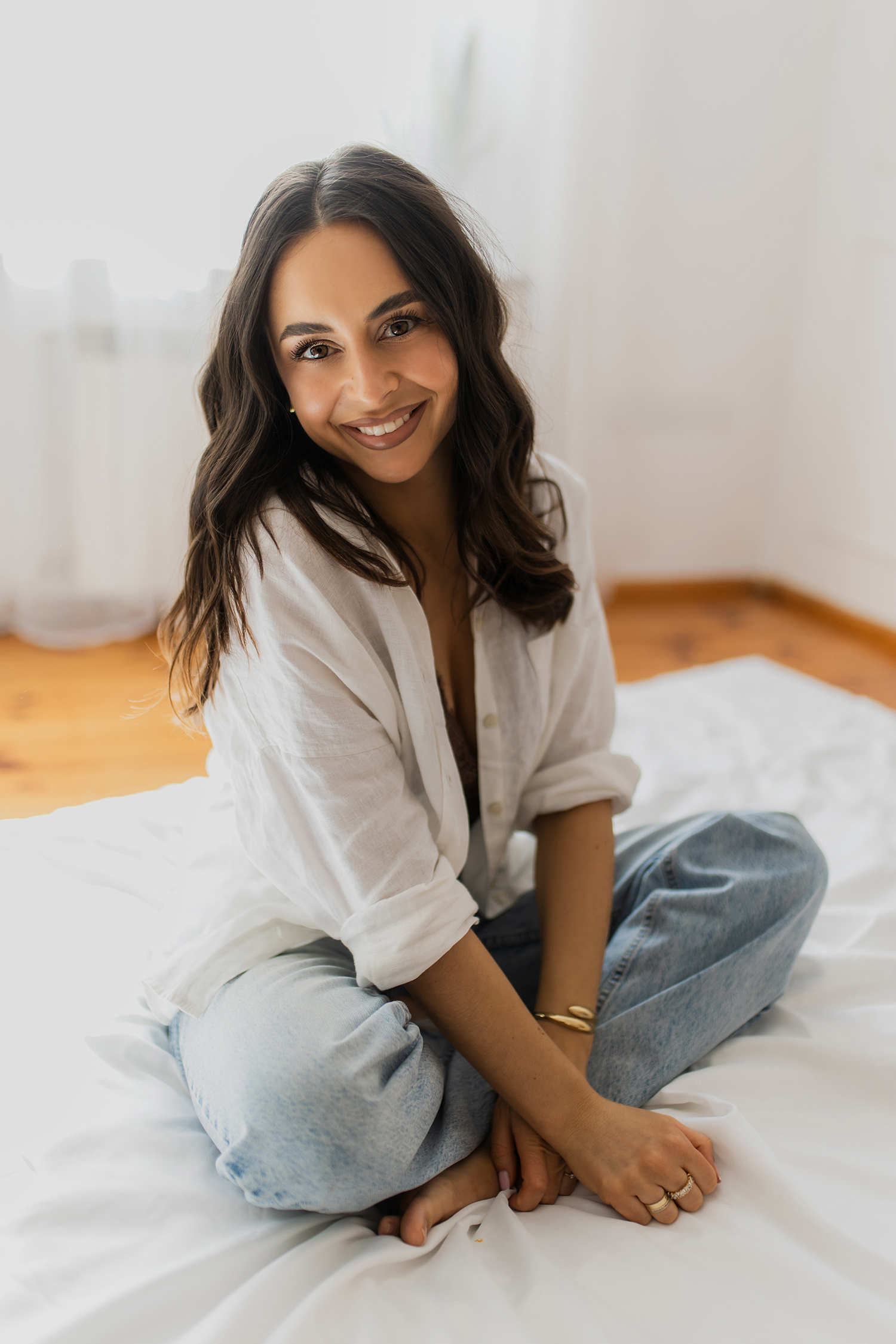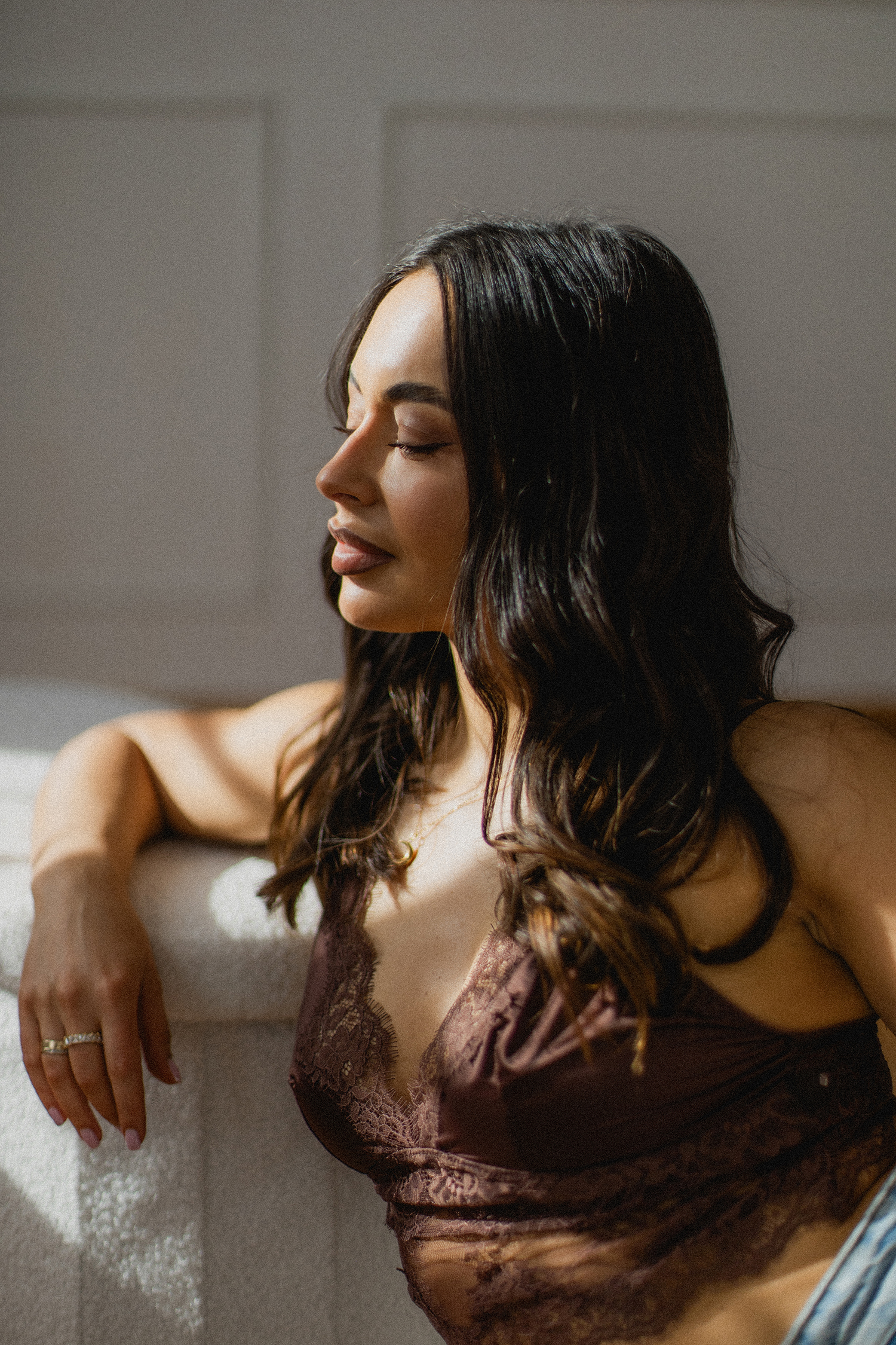 Spotkałyśmy się, by stworzyć coś kobiecego, sensualnego i autentycznego. Światło tego dnia było absolutnie wyjątkowe – miękkie, otulające, podkreślające każdy detal. Klaudia przed obiektywem wyglądała zjawiskowo – naturalna, pewna siebie, po prostu jak milion dolarów.