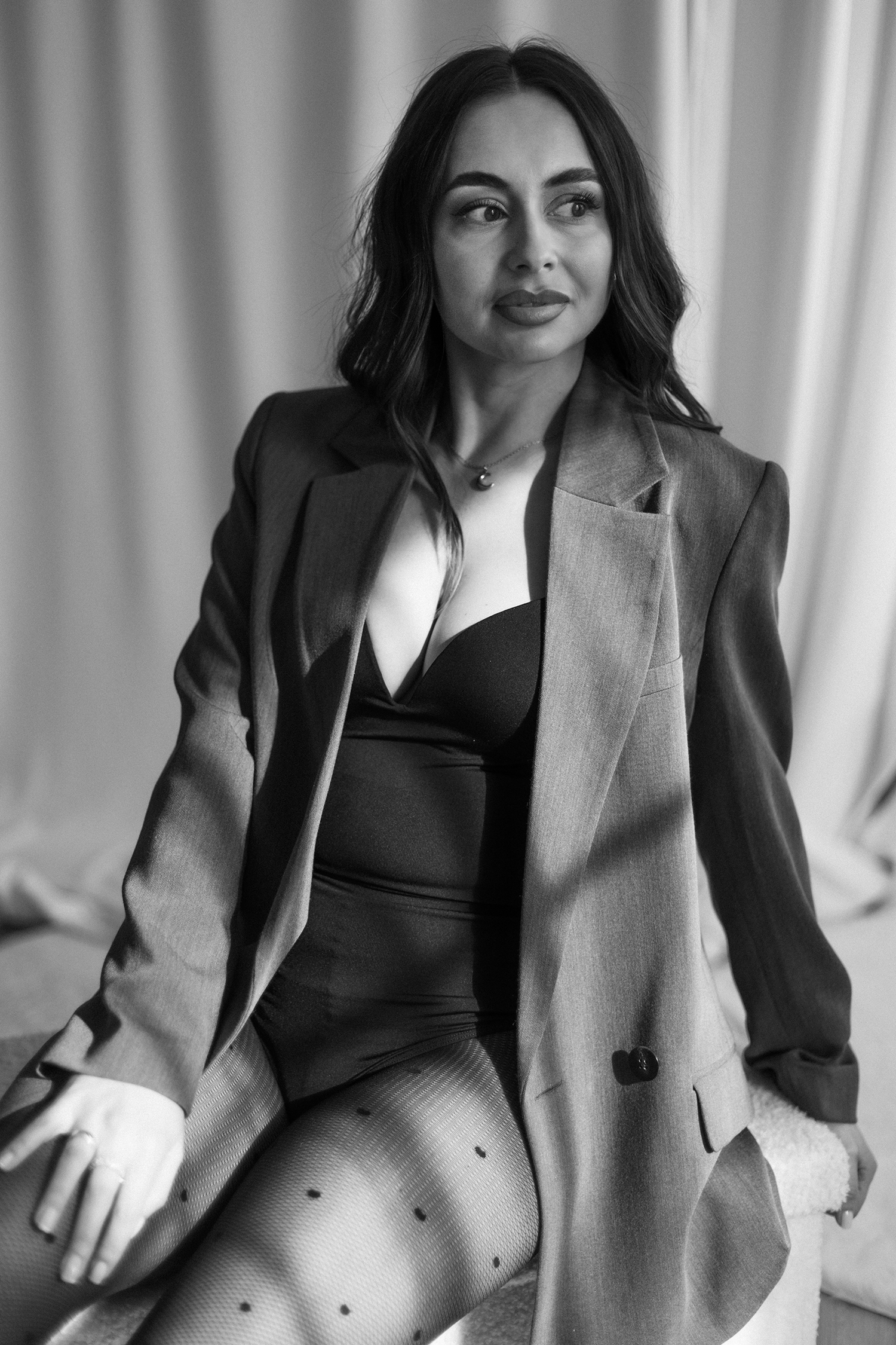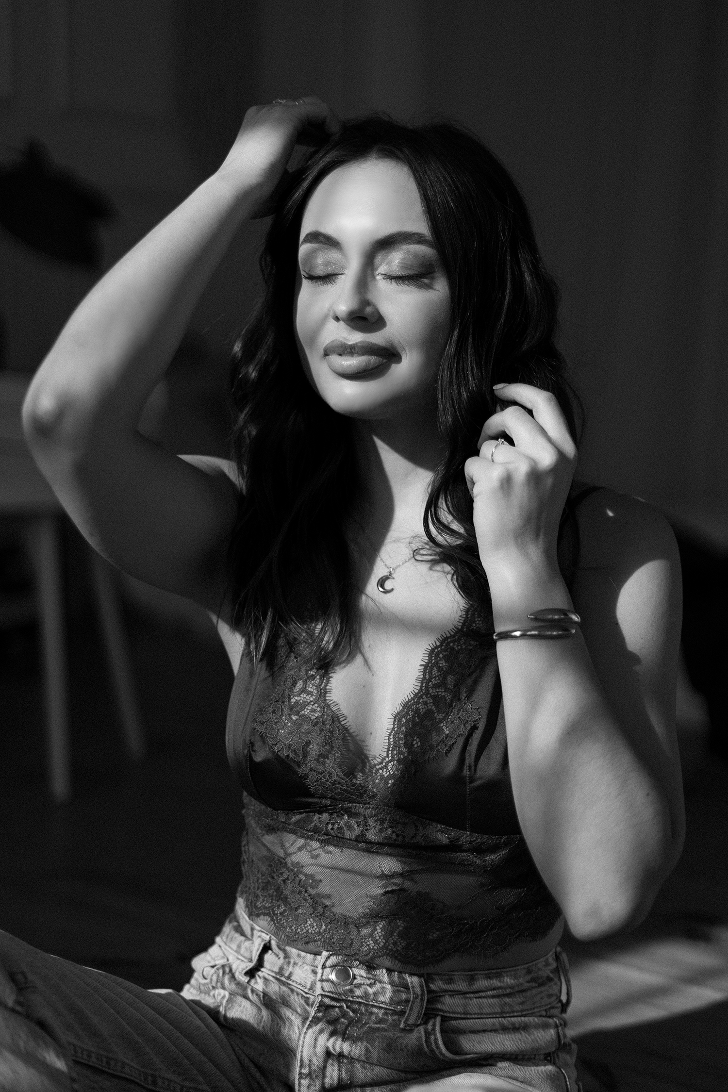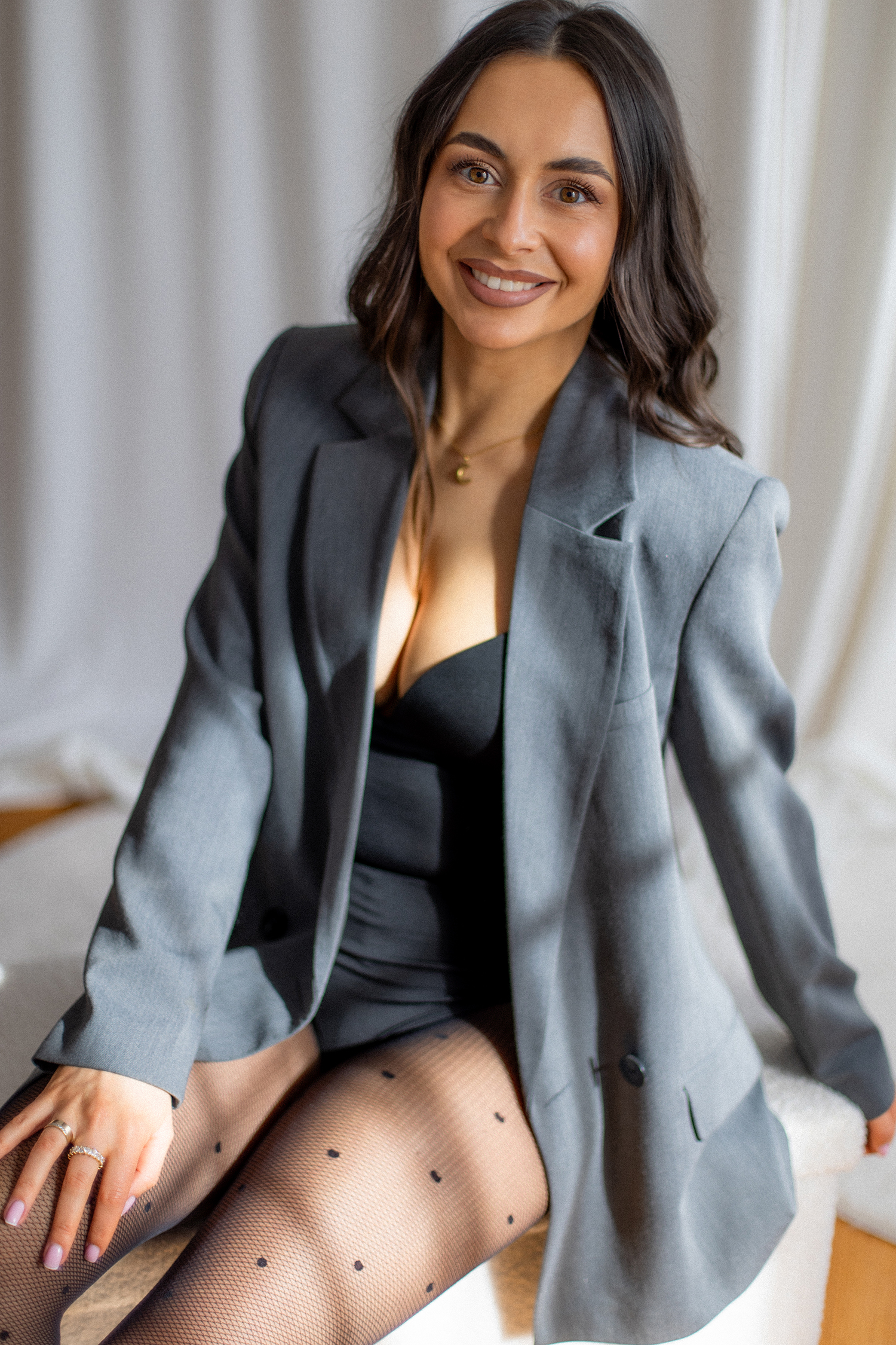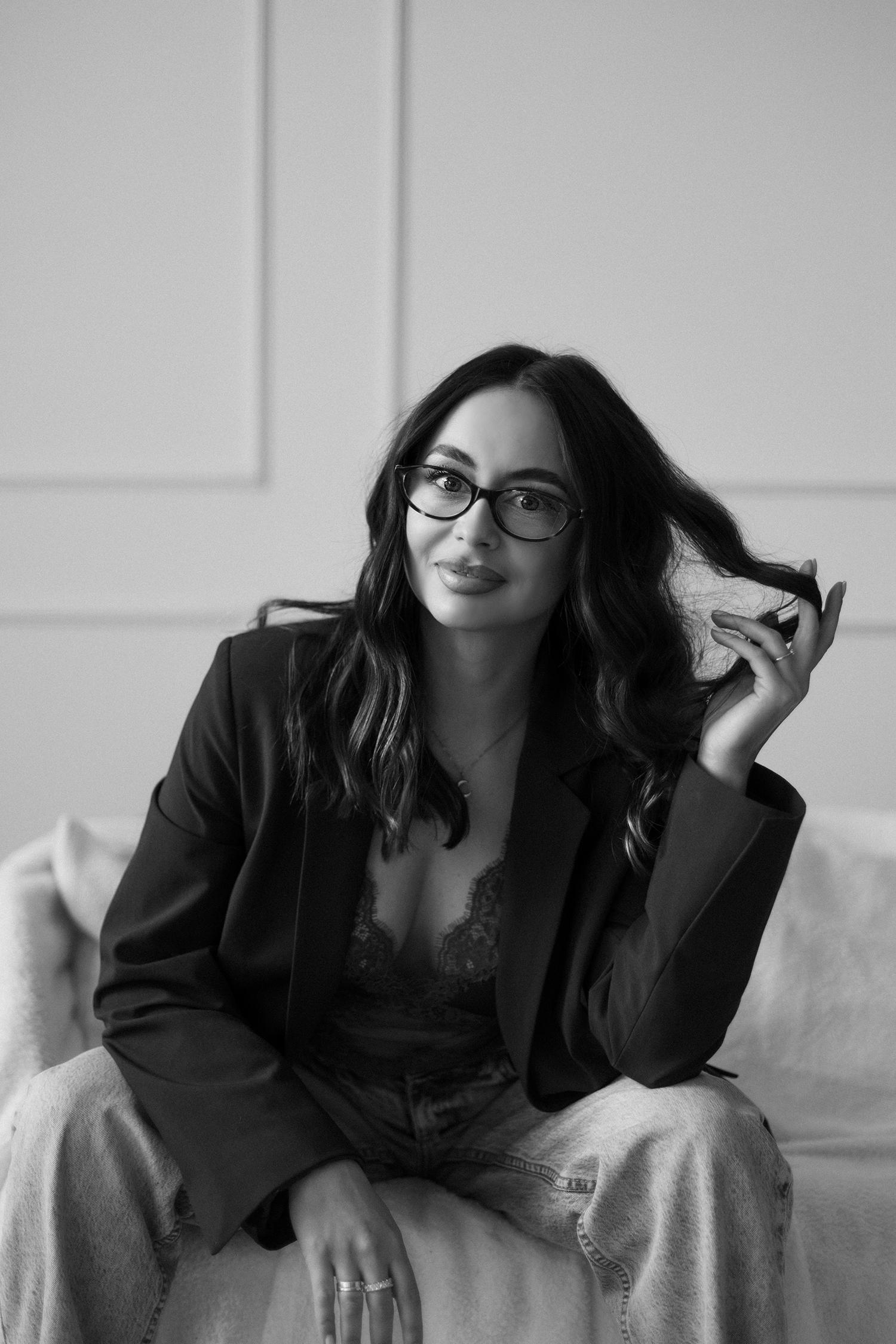 Spotkałyśmy się, by stworzyć coś kobiecego, sensualnego i autentycznego. Światło tego dnia było absolutnie wyjątkowe – miękkie, otulające, podkreślające każdy detal. Klaudia przed obiektywem wyglądała zjawiskowo – naturalna, pewna siebie, po prostu jak milion dolarów.