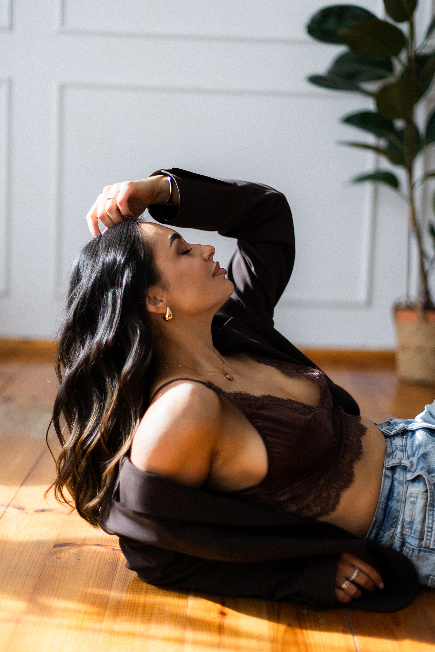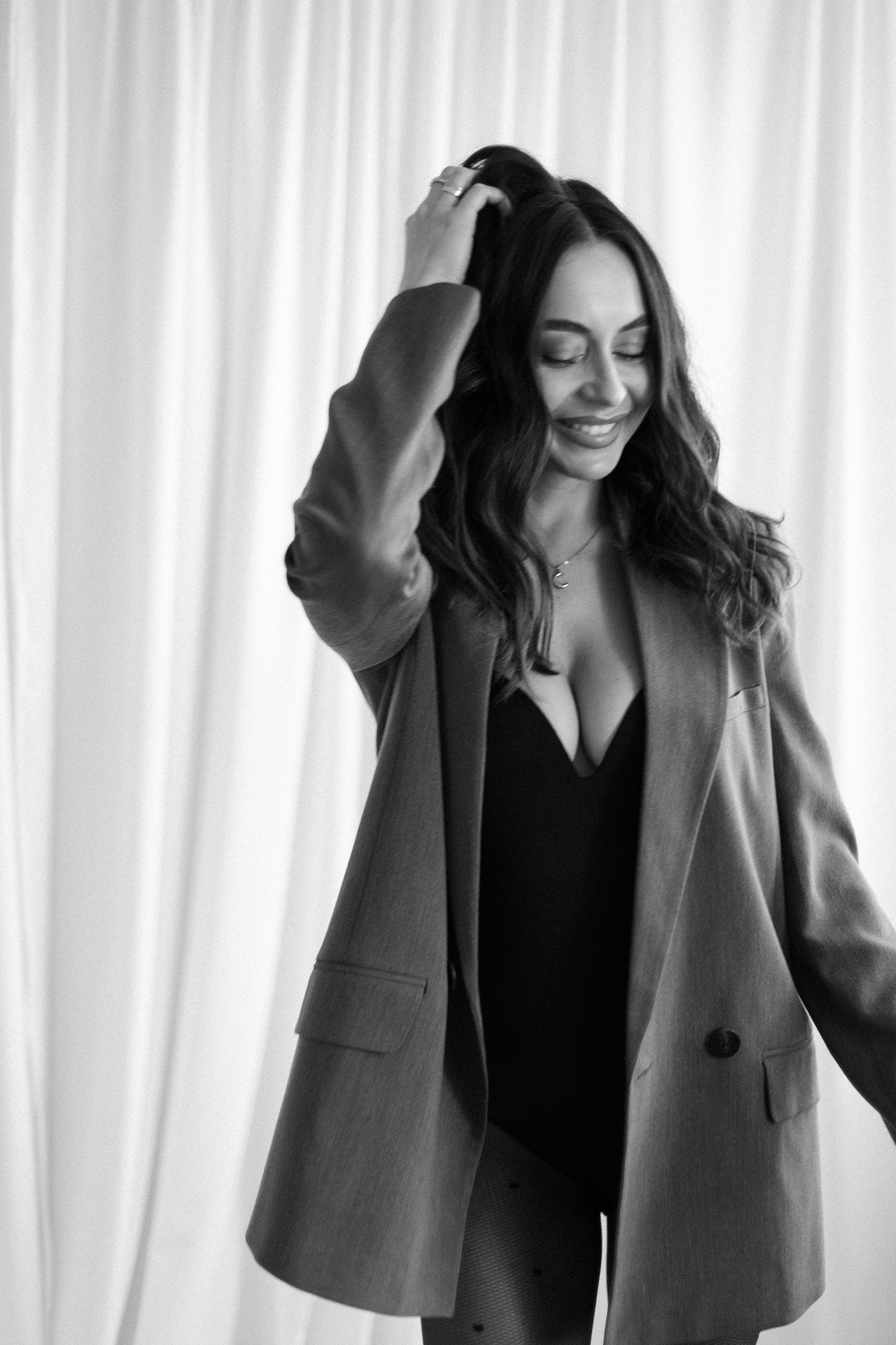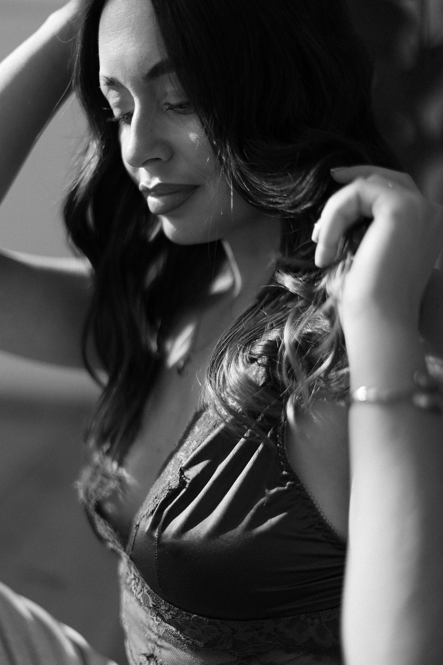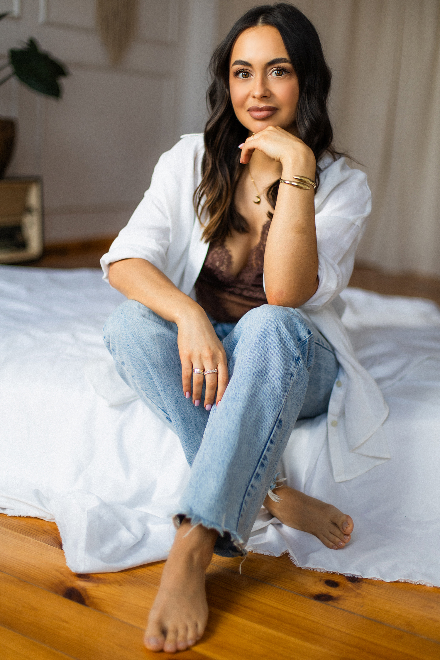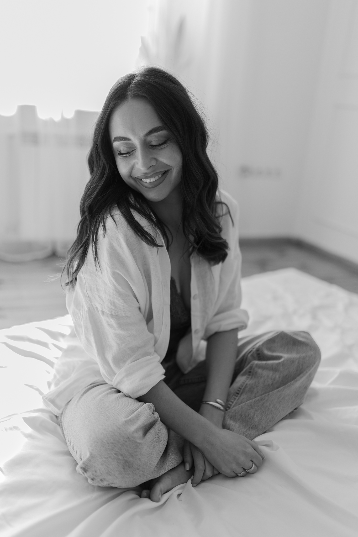 Spotkałyśmy się, by stworzyć coś kobiecego, sensualnego i autentycznego. Światło tego dnia było absolutnie wyjątkowe – miękkie, otulające, podkreślające każdy detal. Klaudia przed obiektywem wyglądała zjawiskowo – naturalna, pewna siebie, po prostu jak milion dolarów.