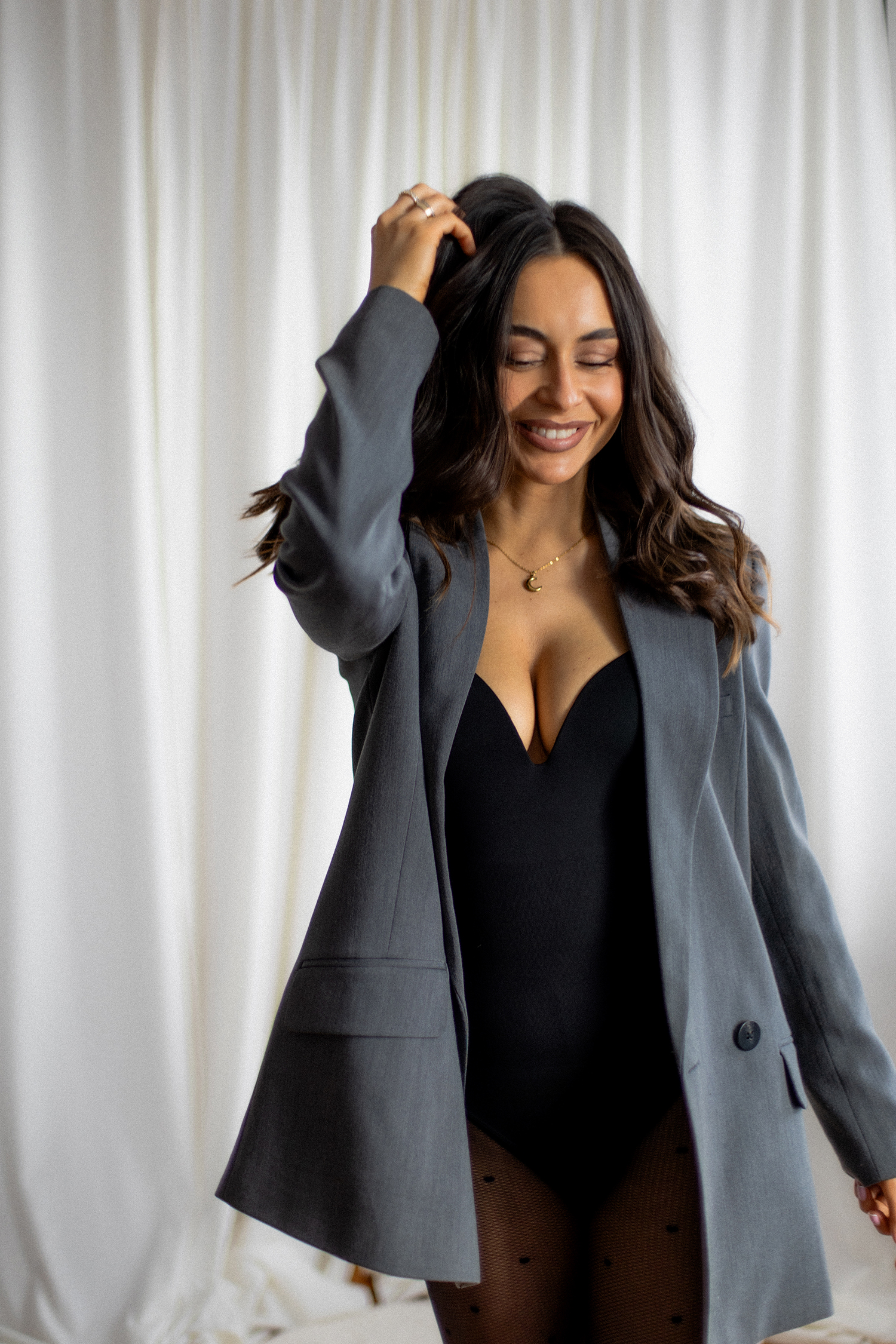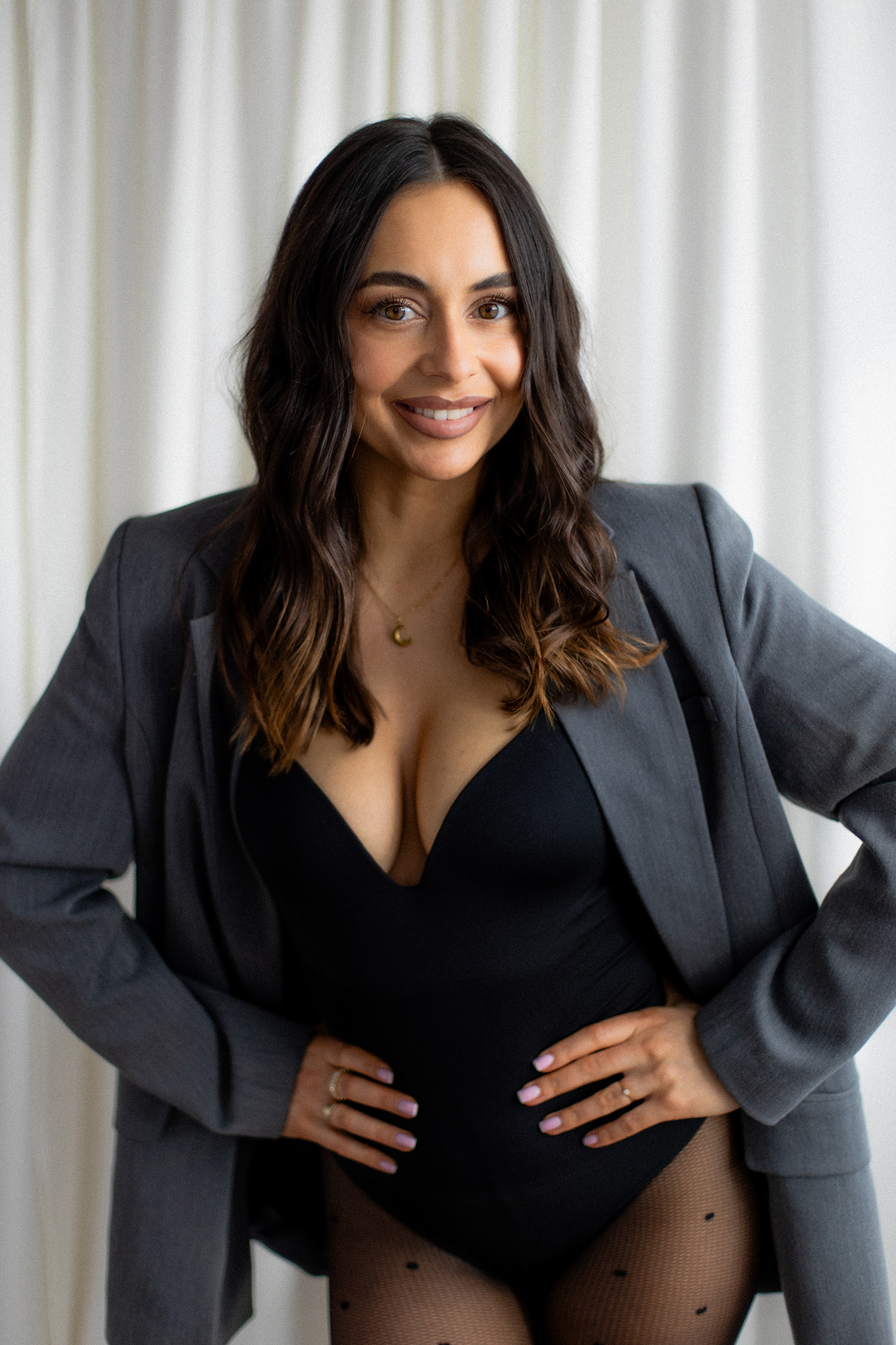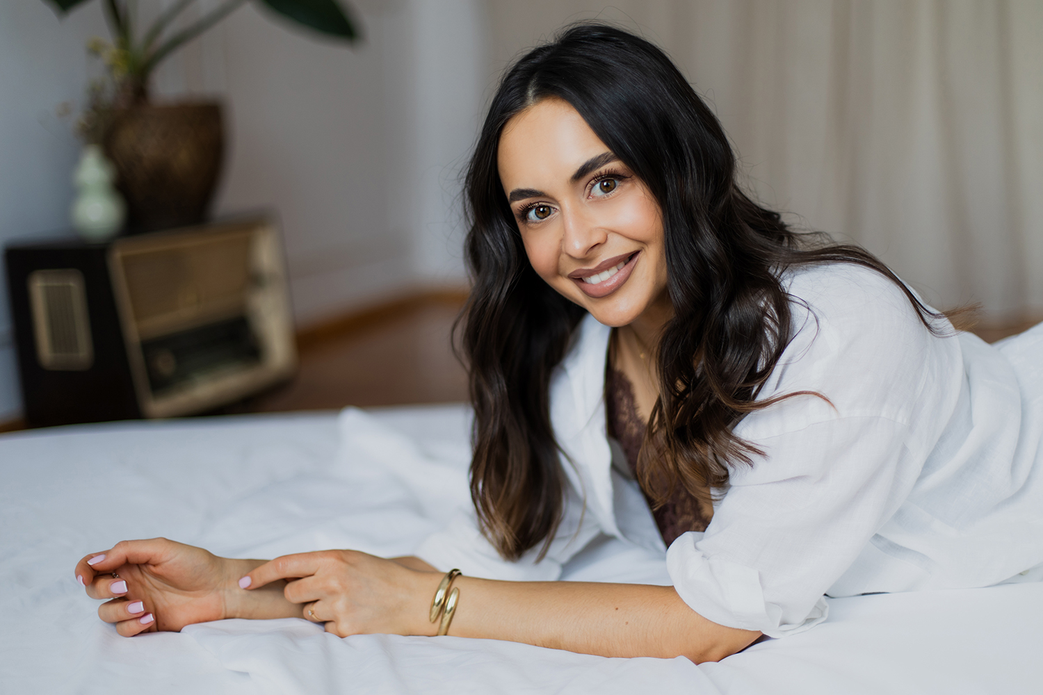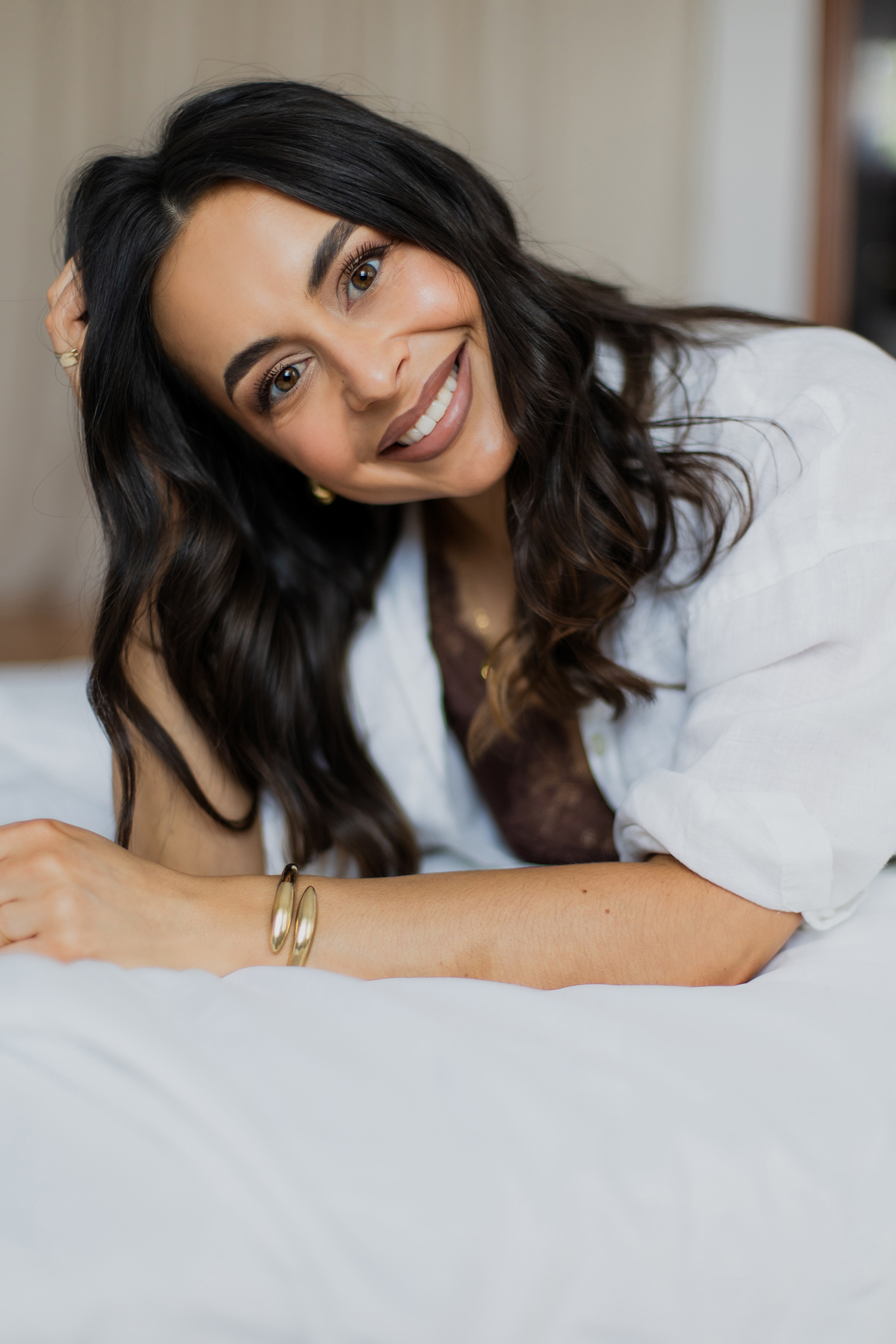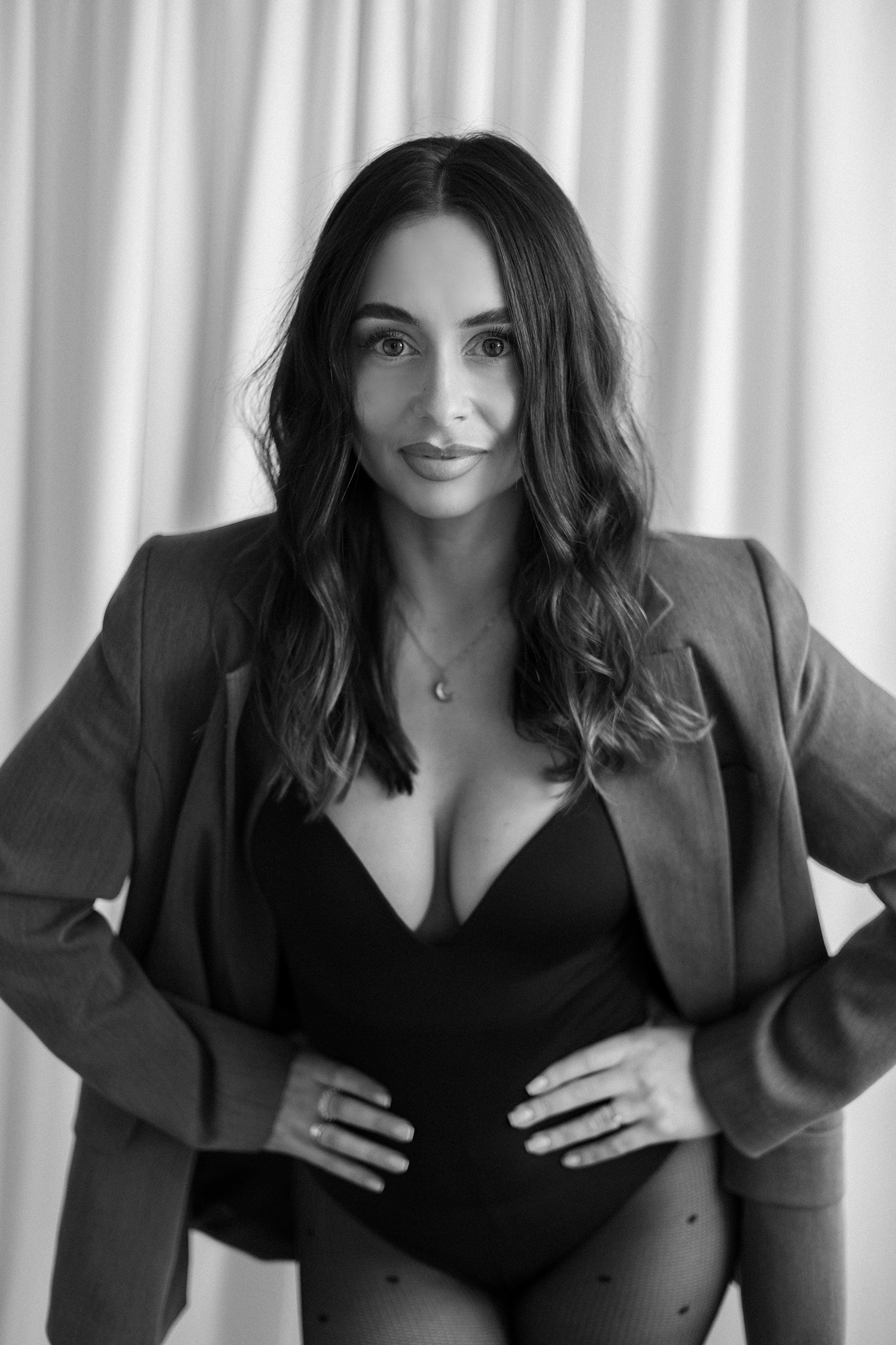 Spotkałyśmy się, by stworzyć coś kobiecego, sensualnego i autentycznego. Światło tego dnia było absolutnie wyjątkowe – miękkie, otulające, podkreślające każdy detal. Klaudia przed obiektywem wyglądała zjawiskowo – naturalna, pewna siebie, po prostu jak milion dolarów.